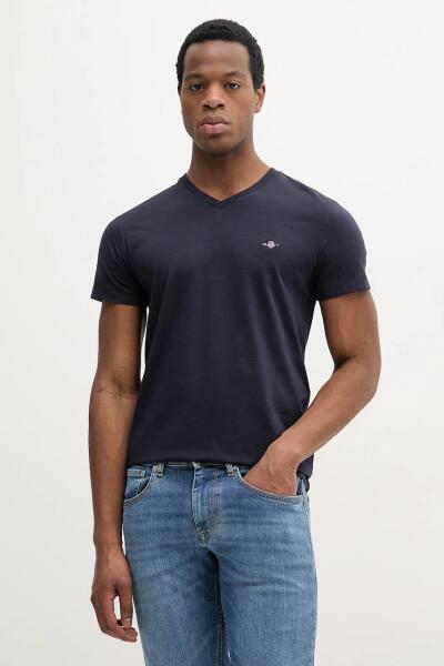 Gant pamut póló sötétkék, férfi, sima - sötétkék M